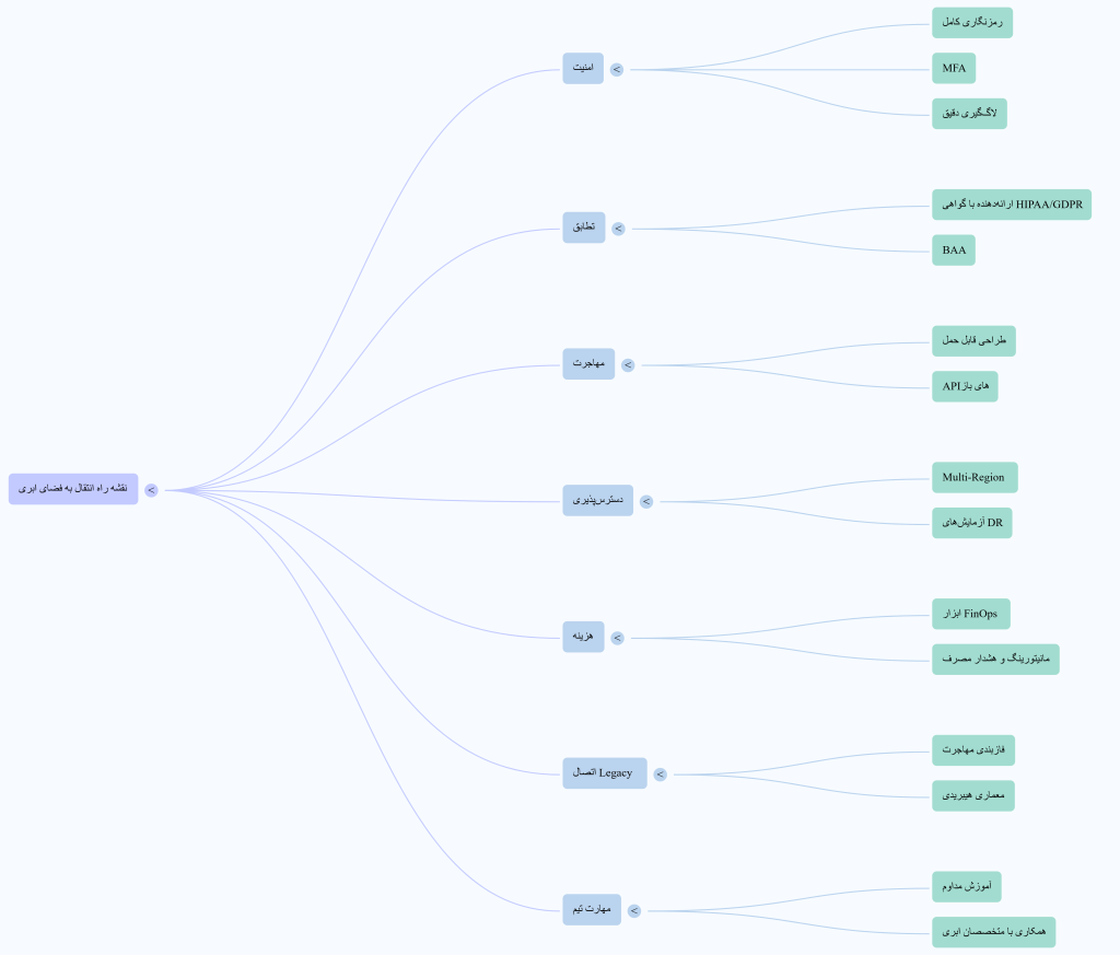 - انتخاب ارائهدهنده ابری دارای گواهینامههای بهداشتی (ISO 27001, SOC 2, HITRUST)